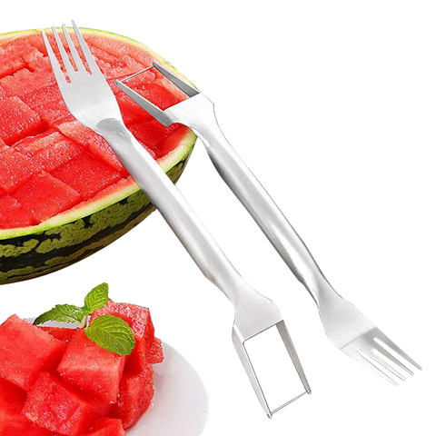 새로운 수박 포크 슬라이서 커터 슬라이서 도구 2-in-1 스테인레스 스틸 과일 커터 듀얼 헤드 과일 포크